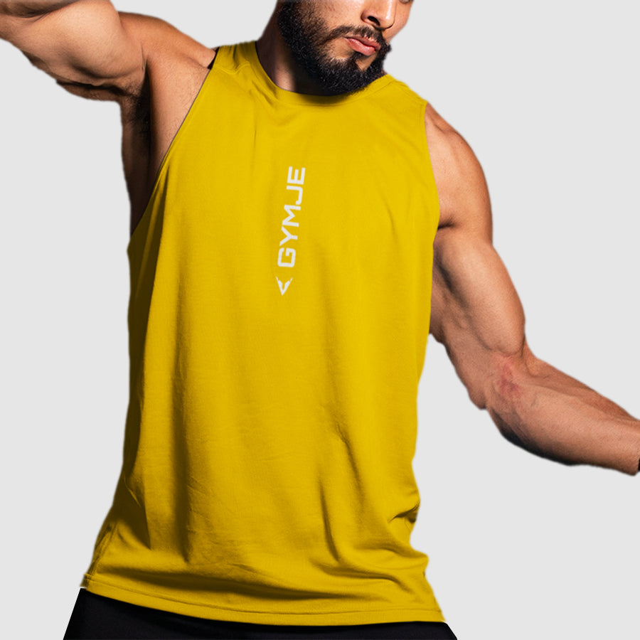 GYMJET Tank Top made from mango color yellow fabric, added the white GymJet logo on the front.